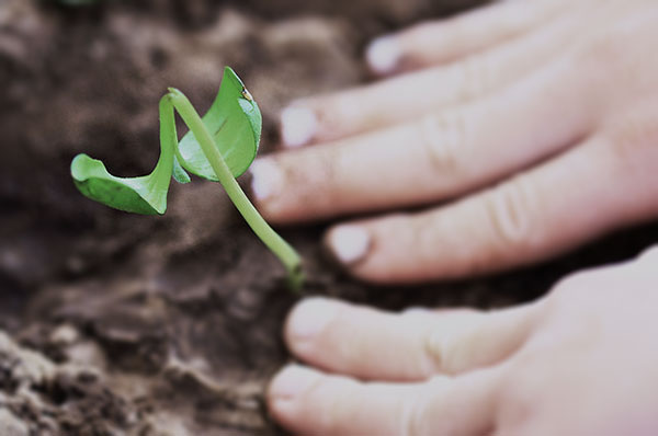 I plant my hands in the garden soil—