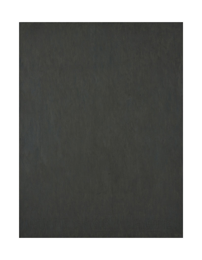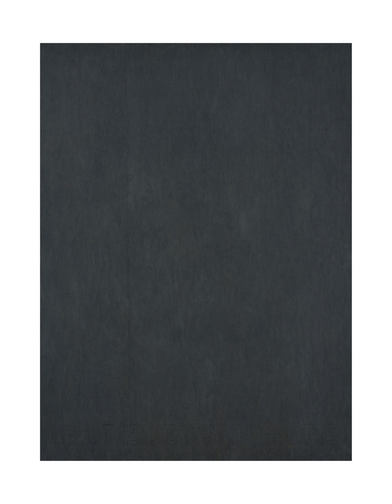 Raquel works with multiple media: mud, stones, line drawings, and monochromatic paintings, where only one color is featured—often gray, as in her series called Gateless Gates, where a series of canvases have a single color but at the same time, at the bottom of the canvas, a single text that viewers must find, must discover, and eventually internalize as their own. The range of gray spans many colors, and ultimately the gray becomes light.