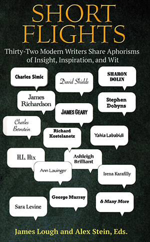 Short Flights seeks to explicate the form, history, and practice of the aphorism as well as inject contemporary tidbits into the collective literary psyche. Most of us are familiar with the quips of Oscar Wilde and the memorable one-liners from the endless plays of William Shakespeare. So much work is done with so few words. Editors James Lough and Alex Stein have collected thirty-two contributions by a variety of writers for this project, including poet Charles Simic. Each writer offers a narrative of his or her relationship to, and experience with, aphorisms. Variations of the aphorism are included as well, like the parable, and forms that many may not be familiar with: the greguería and the Irish bull. Definitions and examples follow each, in the same manner in which a book of poetic form might instruct an emerging poet to understand and practice formal structures.