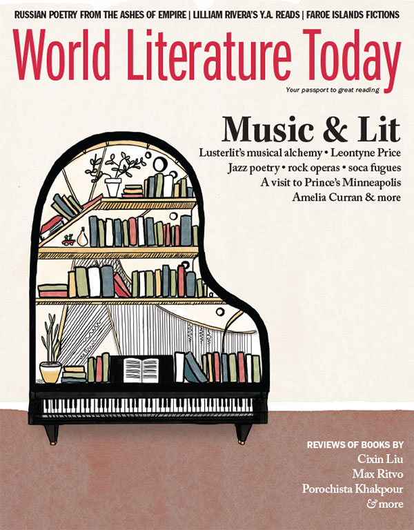 A special section devoted to Music & Lit, featuring eight writers and musicians from around the globe, headlines the September 2018 issue of World Literature Today. “Bonus tracks” include a Spotify playlist tied directly to the cover feature; a trio of recommended rock operas; and a profile of Prince’s Minneapolis. The issue also features an essay on post-Soviet poetry by Philip Metres; new fiction from the Faroe Islands and Mexico; and translated poetry from Brazil, China, Colombia, Denmark, and Lebanon. As always, a wealth of book reviews, featured new books, recommended reading lists, and online exclusives round out the issue.