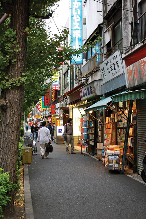 NESTLED IN TŌKYŌ'S Chiyoda Ward is Jinbōchō, a quieter side of the city that stands in sharp contrast with the frenetic energy of central Tōkyō. The first indication of the district’s unique history comes when you step off the subway at Jinbōchō station—images of stacked books adorn the walls from the tracks up to the ceiling. Climbing up to the main road of Yasukuni-dōri, one is liable to see books on carts practically spilling out of storefronts onto the sidewalk.