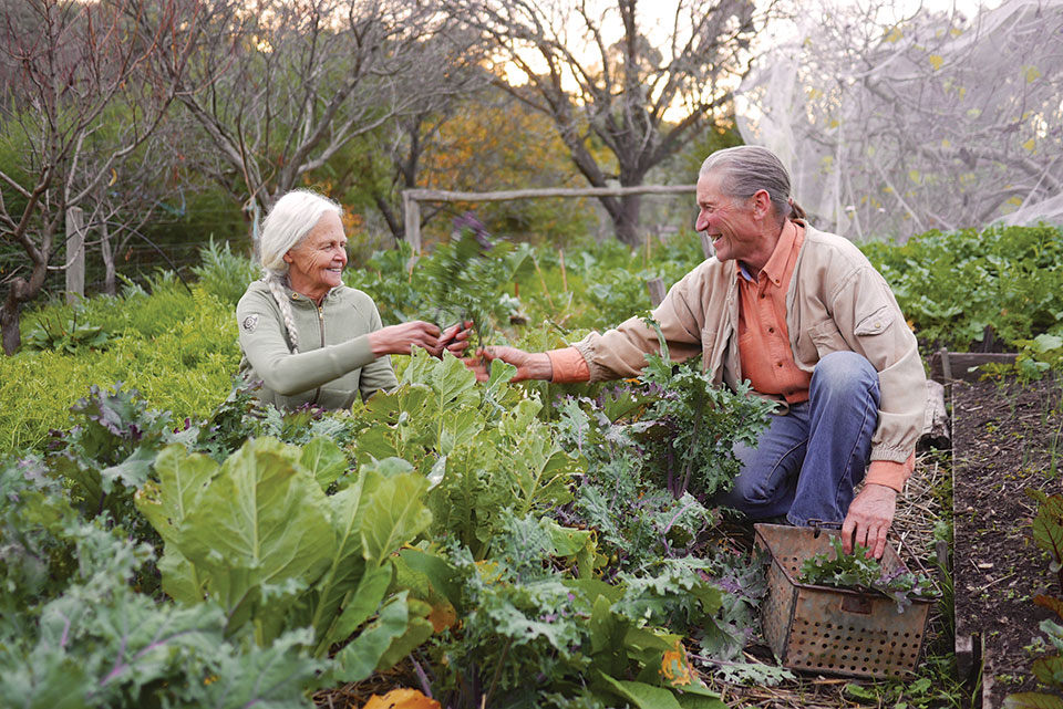 Photo: Holmgren and Su Dennett harvesting greens. Photo: Kirsten Bradley