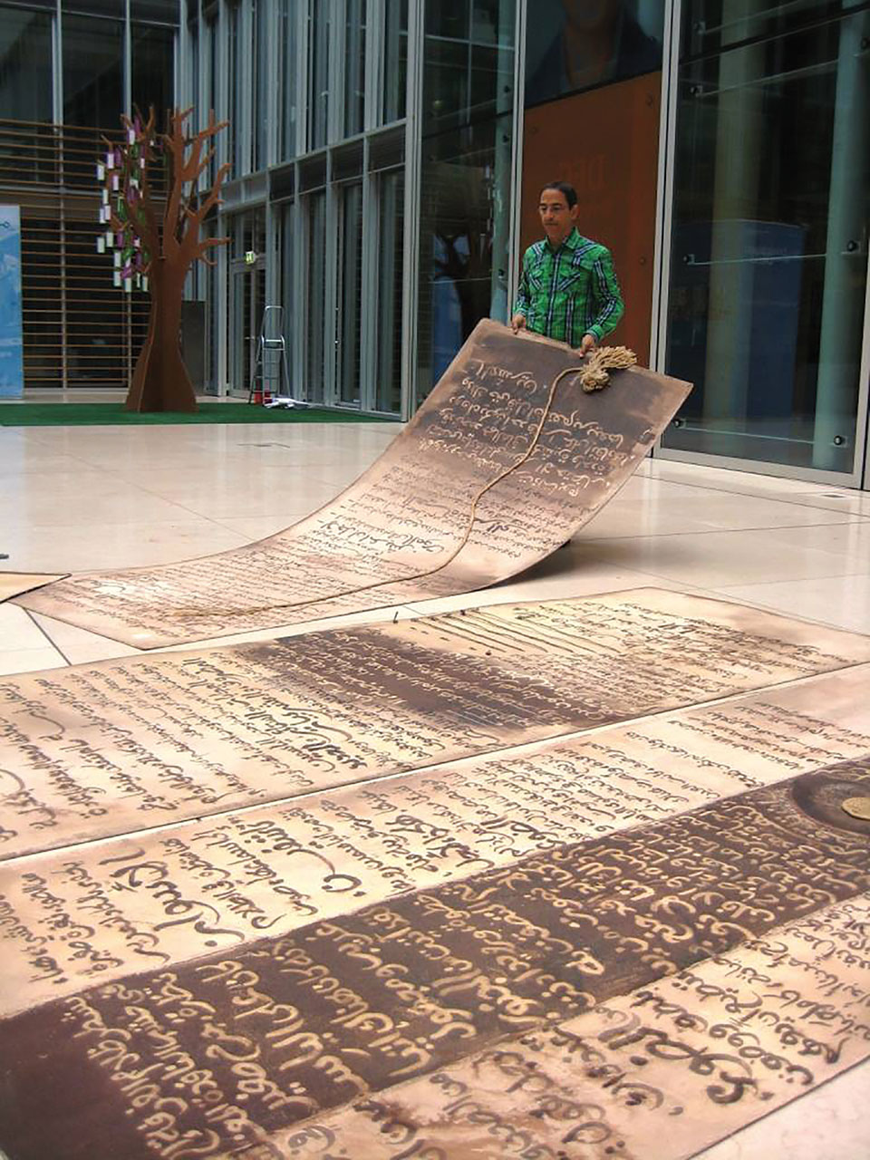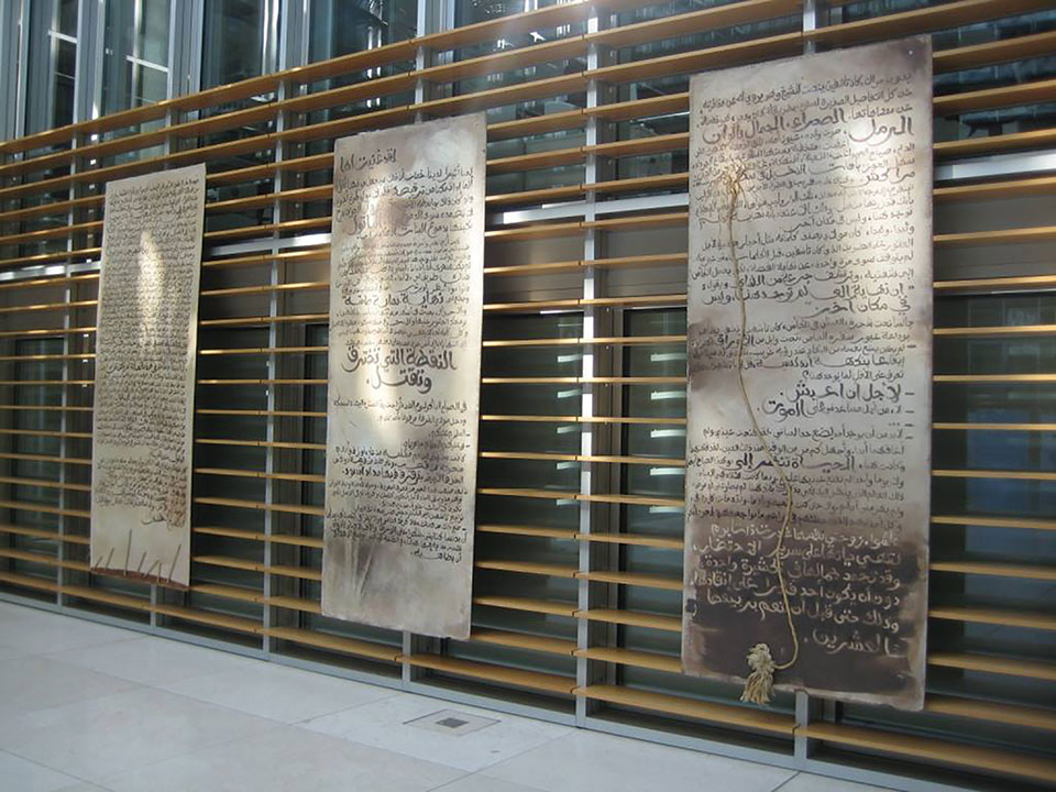 Elalamy: I would say that I am in the field of creation. Today I might write a book. Tomorrow I might work on an art installation like the one I did in Amsterdam in my project entitled “A Novel in the City,” which went on tour in Marrakech, Rotterdam, Cologne, and Copenhagen. After that, I might do an art exhibition of installations or music or drama performances. And for me, all these artistic projects constitute writing. That is, regardless of the material I use, the piece of art I create represents writing. The only difference in this instance is that I do not write using letters; instead, I use forms, colors, substance, etc. Moreover, when I write, it is a way of composing, painting, and so on. In my opinion, it is exactly the same thing, except that this time I do it with the help of letters, words, and sounds.