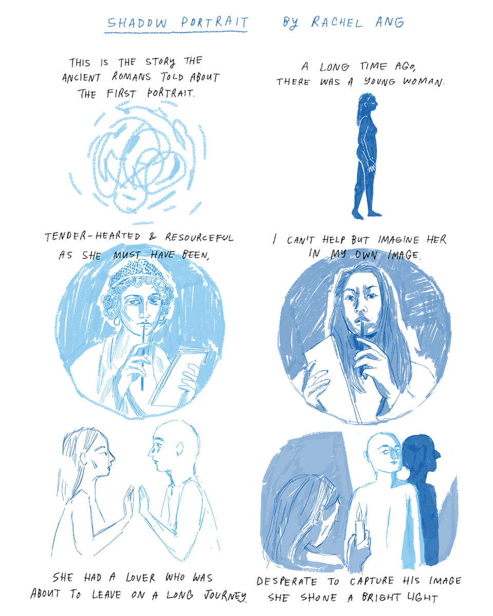 Rachel Ang is a comics artist from Melbourne, Australia. Her work has been published by The Lifted Brow, Going Down Swinging, Meanjin, and The Lily/The Washington Post. Her first book, Swimsuit, won a Silver Ledger Award for Excellence in Comics and Graphic Novels. She is the winner of the 2018 Woollahra Digital Literary Award for Fiction.