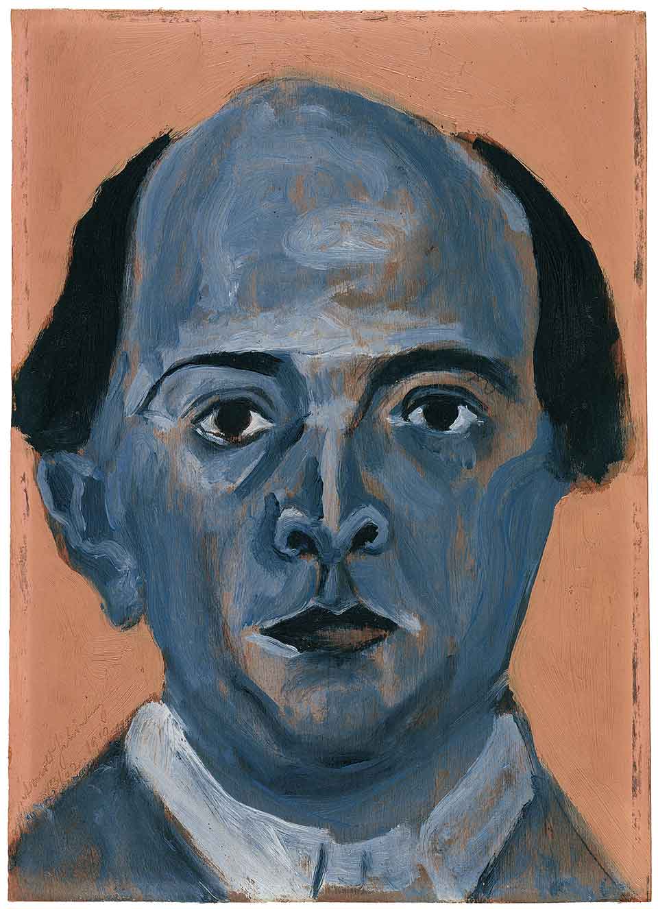 Arnold Schoneberg, Blue Self-Portrait (1910), 22.9 X 31.1cm, Arnold Schönberg Center, Vienna. Used by permission of Belmont Music Publishers, Los Angeles.