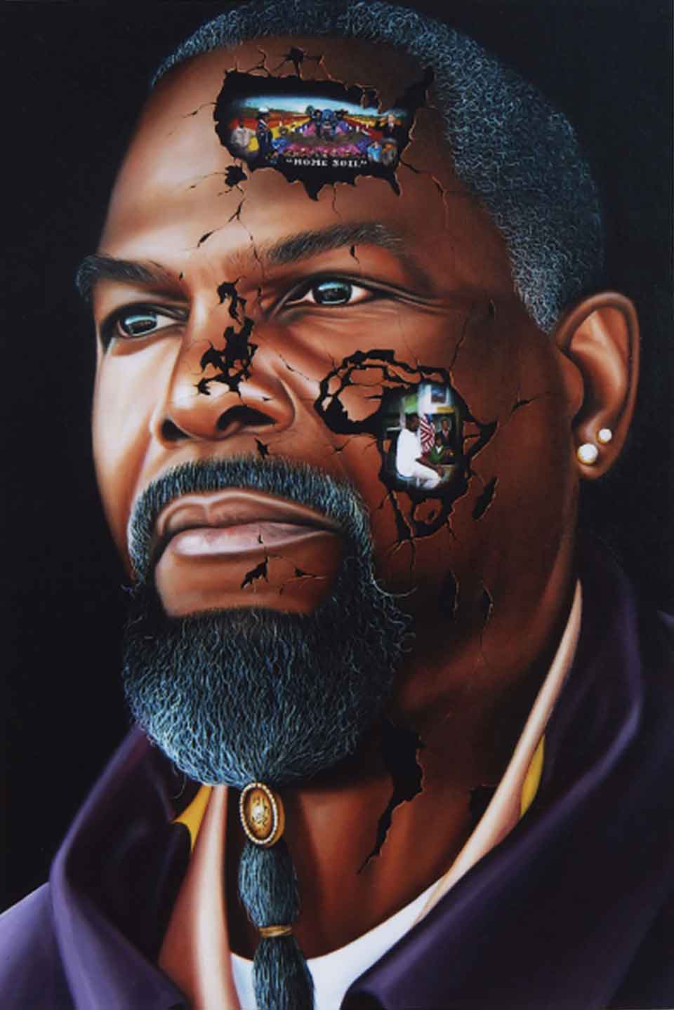 Karlos K. Hill: Your artwork is groundbreaking in so many ways. I’m thinking especially about your signature “teardrop” series, and the way the tears in the paintings often contain a story within a story. You are innovative not only in your artwork itself but also in terms of the conversation between your art and technology. On a deeper level, your artwork actually helped you secure your freedom. You leveraged your creative ability in a way that enabled you to gain the attention of the Obama administration, and from there, with the help of your lawyers and a number of intermediaries, you were able to walk out of prison a free man. Can you talk a bit about the ways in which art has helped you to liberate yourself? Not just literally, as in your liberation from prison, but also spiritually and emotionally. What was the significance of art in that process?