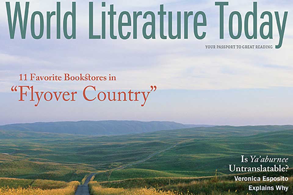 For those living along either coast who might disparage everything in between as “Flyover Country,” we parry with this issue’s cover feature devoted to “The Bookstores of Middle America,” eleven favorite destinations in a roughly clockwise loop that begins in Nebraska and ends in Oklahoma. This summer, we hope you’ll visit one of these stores or some of the many others that enliven the towns and cities highlighted in our literary road trip. If you’re driving in between those urban areas, you’ll be fortunate to encounter some of the stunning landscapes of the Great Plains, like the Nebraska Sandhills depicted in Michael Forsberg’s photograph on the cover. Send us your own favorites to add to the map, and we’ll share them in the coming months. And when you visit your local bookseller, encourage them to stock WLT—with help from dedicated readers, our Light from Abroad will continue to illuminate the literary landscape for another hundred years.