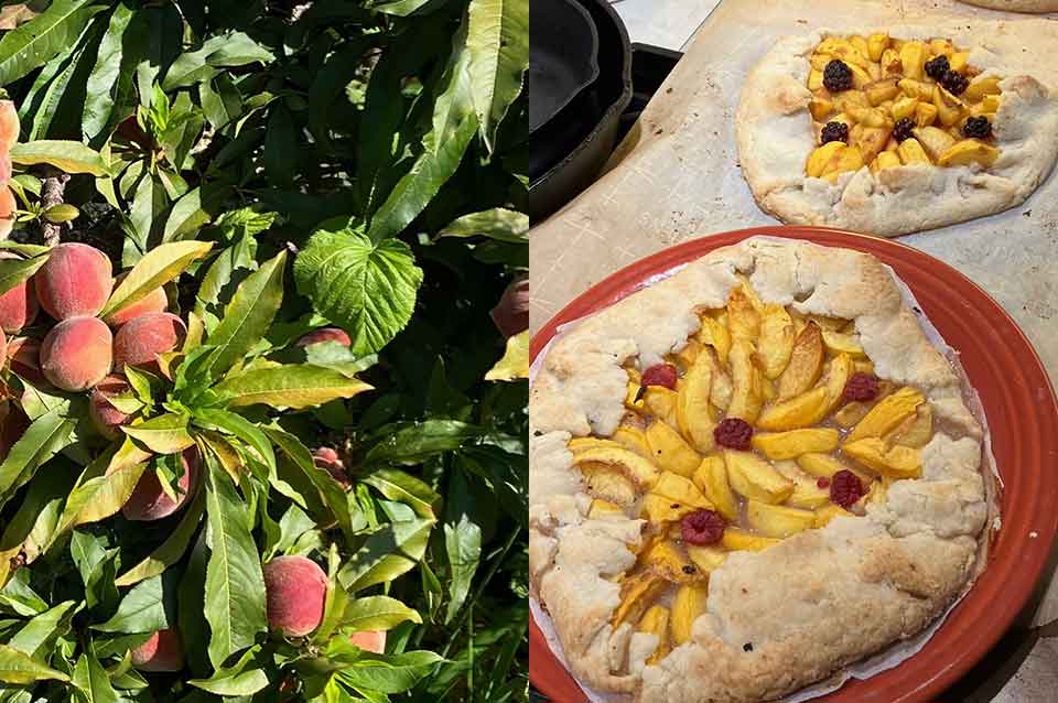 My father died before I married and moved to this spot between the bay and the hills, so he never saw the garden—the peach tree or the corn I planted one year in the raised beds, or the plot of za’atar oregano, sage, and mint. And while my father grew up the son of a confectioner, he didn’t have much of a sweet tooth, but I think he would have loved my peach galette, an easier form of the traditional pie. He’d appreciate its simplicity, the humble presentation, and of course, the peaches that come from a tree that’s small but produces a summer’s worth of fruit.