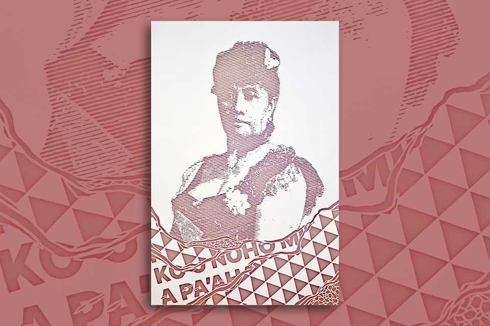 Ian Kuali’i, Portrait Queen Lili‘uokalani (2021), hand-cut paper with painted verso, 72 X 48 in.
