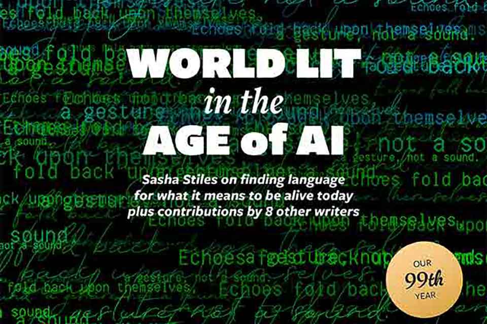 With the current issue, World Literature Today wraps up its ninety-ninth year of continuous publication. Even as the excitement of WLT’s centennial shimmers on the horizon, I’m reminded that the previous nine editors of Books Abroad and WLT all operated in the relative stability of the post-Gutenberg half-millennium, during which print culture held sway as one of the great change agents of modernity. In the midst of what some regard as the twilight era of print’s primacy in the first quarter of the twenty-first century, the digital change agent on everybody’s mind, of course, is artificial intelligence. My editorial colleagues and I hope the cover feature that begins on page 23 will help WLT’s readers begin to reckon with the implications that AI has for world literature in 2025 and beyond.