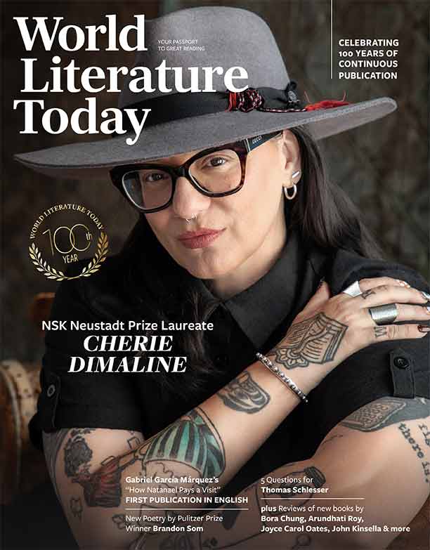 NSK Neustadt Prize laureate Cherie Dimaline headlines the January 2026 issue of WLT, kicking off the magazine’s 100th year of continuous publication. Additional highlights inside include the first publication in English of Nobel Prize winner Gabriel García Márquez’s “How Natanael Pays a Visit,” new poetry by Pulitzer Prize winner Brandon Som, and a mini-interview with French author Thomas Schlesser, whose novel Mona’s Eyes was named Barnes & Noble’s 2025 Book of the Year. Reviews of new books by Bora Chung, Arundhati Roy, Joyce Carol Oates, Thomas Pynchon, Hadi Abdullah, Lesyk Panasiuk, and many more round out the fabulous issue. (Cover photo by Shevaun Williams)