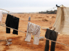 Photo by Pieter Stockmans“Syrian refugees go about their business in a refugee camp in Mafraq, Jordan . . .” Ropes on poles, jeans & shirt…