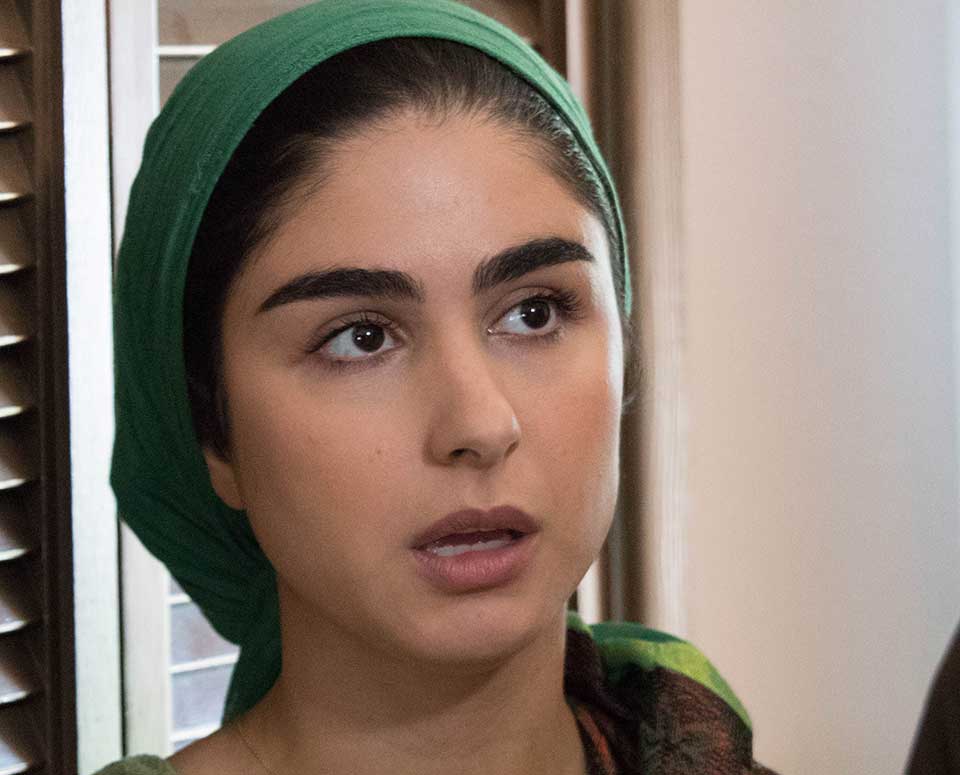 I have yet to find a feature narrative film made by an Iraqi filmmaker, let alone one whose cast is made up of the community it represents, let alone led by female talent. In Pomegranate, the majority of our Muslim Iraqi family is Muslim and of Iraqi background—except for Ismail Taher, who plays Ali, Niran’s brother (he is Muslim of Palestinian descent), and Fatima, Niran’s nine-year-old sister, is played by Jordyn Kashat, a Chaldean. The Chaldean family that lives across the street, which include Mary, her brother Matthew, and their mother Nisreen, are all Chaldean.
