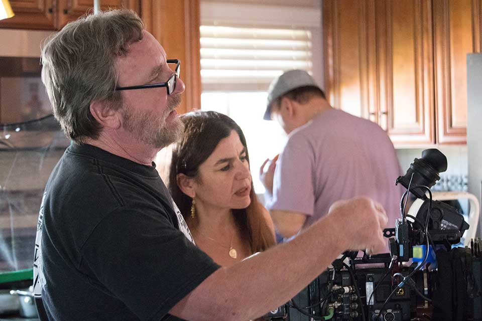 Namou: Not really. We bought a Trump sign and set it on the lawn during filming and turned the sign over (opposite the street) after shooting—until the next time we needed to show it. We had a scene in the produce market and made sure that no one wearing a mask walked into the scene. WDIV-TV / Local 4 Detroit provided us with 2016 election footage, which we used on our TV.