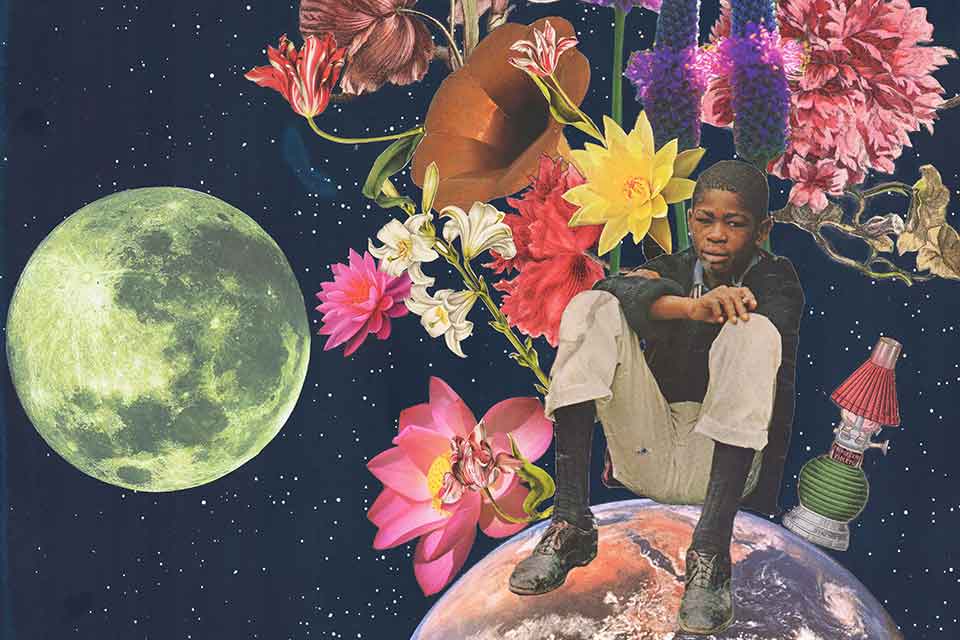 Johnson: In the paper collages in Universal Magnetic, you’re recontextualizing Black and Brown figures by removing them from scenes of pain and suffering and inserting them into spaces that celebrate joy and hope. What was your process when you created these collages?