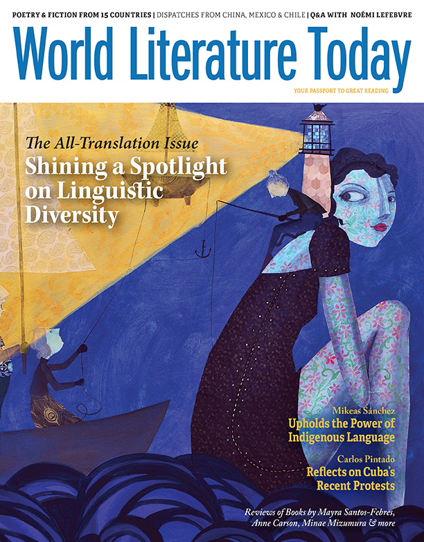 Denise Duong is a Vietnamese American artist whose artwork appears on the cover of the Autumn 2021 issue of World Literature Today. Her paintings, drawings, and murals tell stories of adventure—of hope and love and loss—with an eclectic cast of characters modeled after marionette puppets, and her work often features vibrant, eye-catching colors. A native Oklahoman, she embraces the state as her home. Her art is featured throughout Oklahoma and the wider United States, and internationally as well.