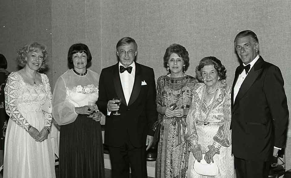 1 The 1984 Neustadt Prize banquet honored Finnish writer Paavo Haavikko. Left to right: Astrid Ivask, Ritva Rainio, Paavo Haavikko, Dolores Neustadt, Doris Westheimer Neustadt, and Walter Neustadt Jr. 2 Dolores Neustadt and juror Shirley Geok-Lin Lim at the 1998 Neustadt Prize banquet honoring Nuruddin Farah. 3. Dolores Neustadt at her ninetieth birthday celebration in April 2018 | Courtesy of Nancy Barcelo. 4. Dolores Neustadt at her ninetieth birthday celebration in April 2018 | Courtesy of Nancy Barcelo. 5. Dolores Neustadt and her daughters—Nancy Barcelo, Susan Neustadt Schwartz, and Kathy Neustadt—at the University of Oklahoma in 2014 | Photo by Jen Blair. 6. Dolores and Walter Neustadt Jr. in 2014 | Photo by Shevaun Williams. 7. Dolores and Walter Neustadt Jr. (date unknown).