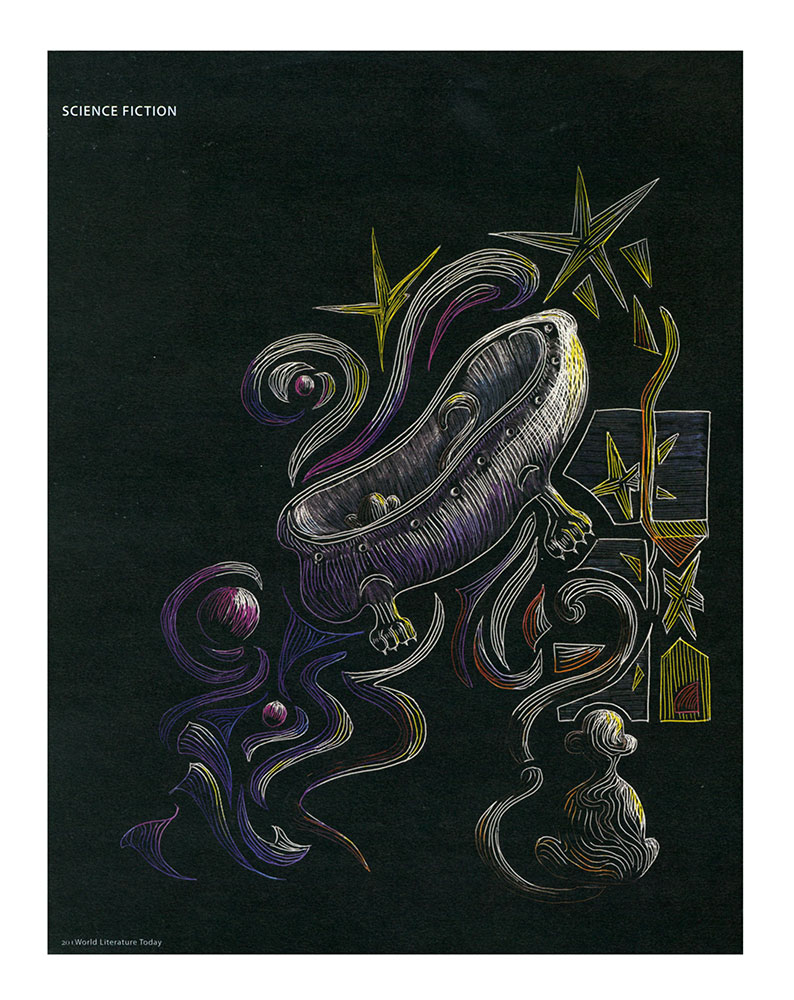 In recent years, Marla also took on an active role in the broader work of editorial acquisitions and issue planning as well as the creation of award-winning illustrations that enhanced the design appeal of the magazine (see gallery, above). In particular, she was the impetus behind our issues devoted to graphic literature (March 2007) and international science fiction (May 2010). Marla was every bit a team player and truly indispensable.