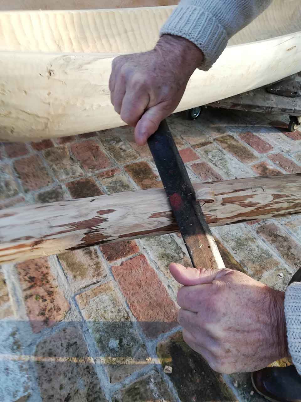 Even in its unfinished stage, the piroga has provoked an interesting exchange about sustainability. Australian poet John Kinsella, who wrote a poem for it, asked Lanfredini for permission to use their email correspondence for the book he is currently writing with Russell West-Pavlov, professor of comparative Global South cultural and literary studies in Australia, Africa, and the Caribbean. Entitled Per Se: The Imperatives of Place II (Narr, forthcoming), the book discusses the poetics of space and time and their transformation in the contemporary world. Kinsella and West-Pavlov contrast Lanfredini’s approach with that of Oslo’s Future Library project, for which one thousand Norwegian pines were felled in 2014 in order to build a safe room aiming at conserving one hundred literary works to be published in 2114 on paper made from one thousand new pines planted to replace the primeval forest.