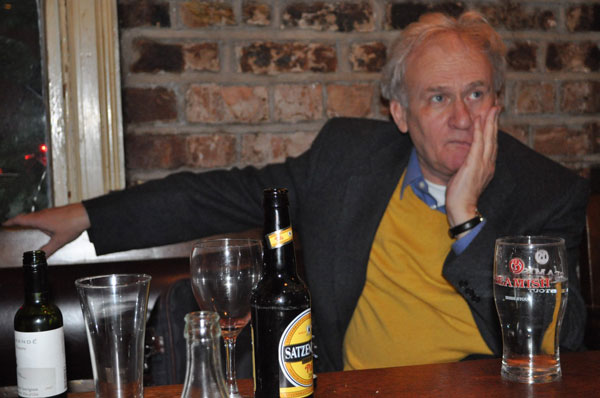 But I was no local, and I’m not a poet. Not really. Fiction is my bread and butter. I write poems because I hang out with poets back home. Ó Bhéal belongs in the poetry big leagues—or perhaps the Poetry Premier League. As my pint of ale dipped well beyond half-empty, I vowed not to pull my silly little poem about drowning Billy Collins from my pocket. Instead, I struck a compromise with self-doubt and let it glue me to the bench. I would sit and listen, nothing more.