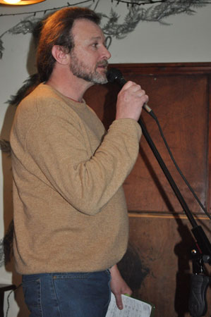 At around 9:20, a man in a forest-green sweater came in to fiddle with the sound system. Voices rose from the stairwell, and by 9:25 fifteen more people had arrived. A man my age—middle-aged, I supposed—shouldered through the gathering crowd and ducked behind the bar to draw pints and pour whiskies.
